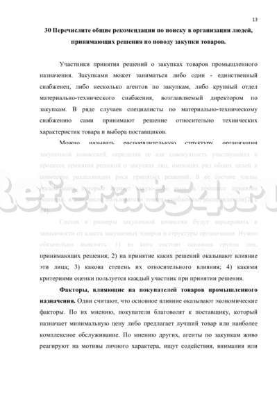 30 Перечислите общие рекомендации по поиску в организации людей, принимающих решения по поводу закупки товаров. 13